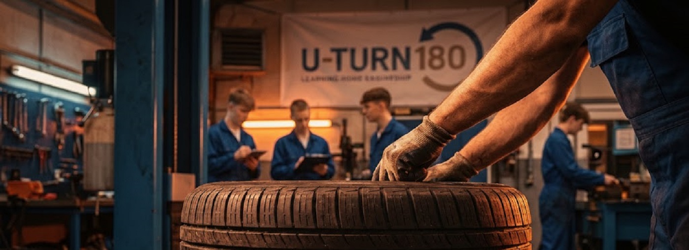 Re-integratie door doen: In onze shop doen jongeren werkervaring op in een echte werkomgeving. Ze leren het vak van bandenspecialist van ervaren rotten in het vak.
